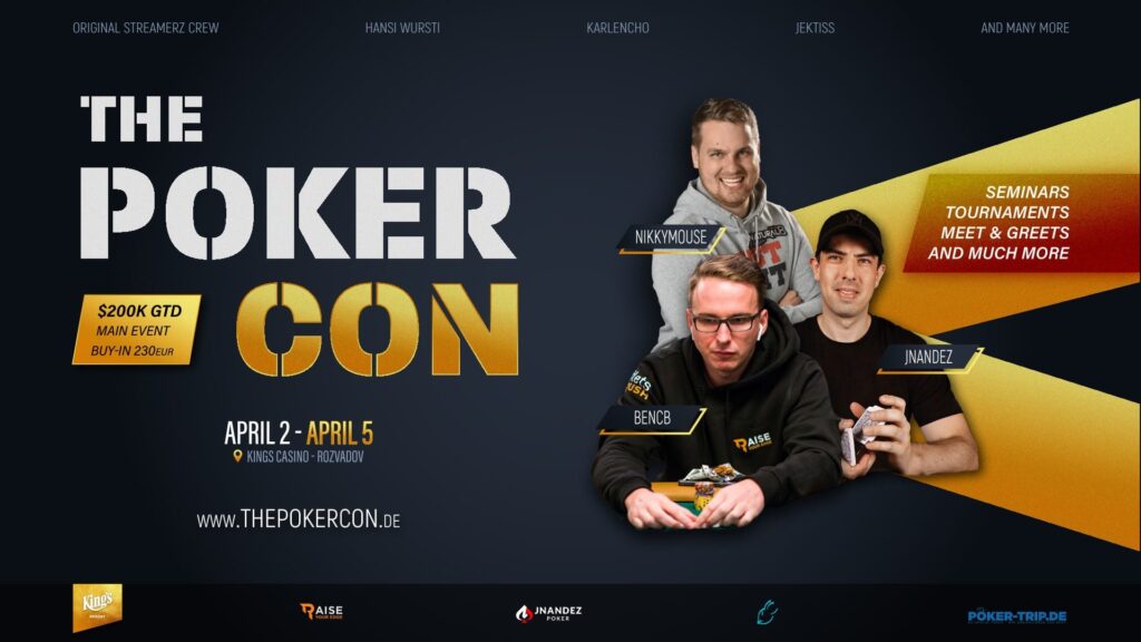 Tussen 2 en 5 april is het tijd voor ‘The Poker Con’. Misschien zegt deze naam je nog niet zoveel, maar deze gloednieuwe serie staat in het teken van drie online giganten: ‘Bencb’, Fernando ‘JNandez’ Habegger en ‘NikkyMouse’. Tijdens deze reeks zijn er onder meet & greets met deze pro’s en geven ze verschillende seminars. Natuurlijk wordt er ook gewoon gepokerd. Het ‘NikkyMouse’ Main Event, vernoemd naar de Duitse Twitch-streamer, heeft een buy-in van €230 en een prijzenpot van tenminste €200.000. Het driedaagse event kent vijf startdagen.