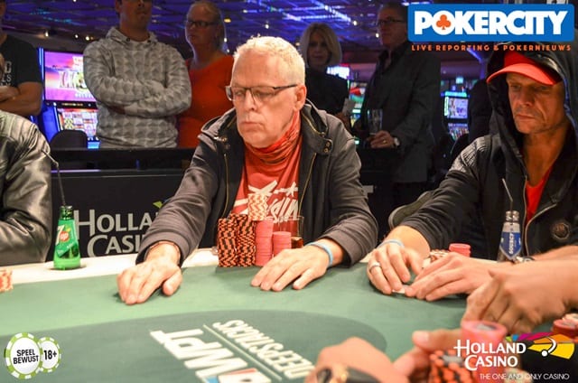 De al enige tijd shorte Jan van Dijck (9e, €1.350)ging all-in met zijn resterende stack en kreeg maar liefst vier callsachter zich. Op het J 7 4 4 T board was zijn uitschakeling eenfeit met A Q tegen de 5 5 van Kees Aerts.