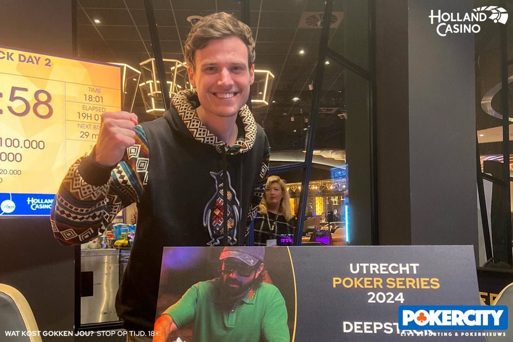 Stan van Dijk is de winnaar van de €565 NLH Re-entry bij de Utrecht Poker Series, goed voor een prijs van €21.103, een €1.100 Dutch Open ticket en een fraai Domtorentje. Van Dijk liet heads-up Michael de Jonge achter zich, de runner-up won €14.059. Het brons was voor Gurur Zeriner die €10.044 kreeg.
