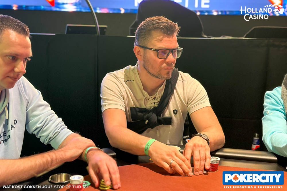 Vanaf de hi-jack opende René Kouseband naar 4.000. De speler op de cut-off had andere plannen en ging naar 13.000. De actie kwam terug bij de PokerCity-crewmember, die all-in schoof voor 42.500. De snelle call volgde.
