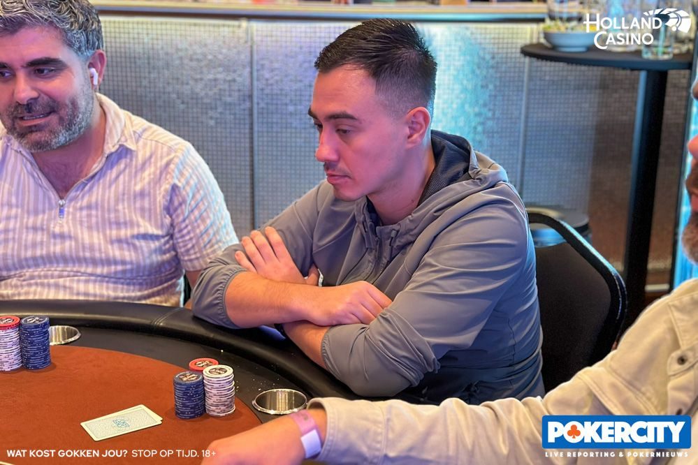Carlo Wolters raiste under the gun naar 80.000, waarna Vincent Gabel op de button en big blind Van Tran de call maakten. Flop 2 8 3 leverde checks op van Tran en Wolters, waarna Gabel all-in schoof voor 580.000.