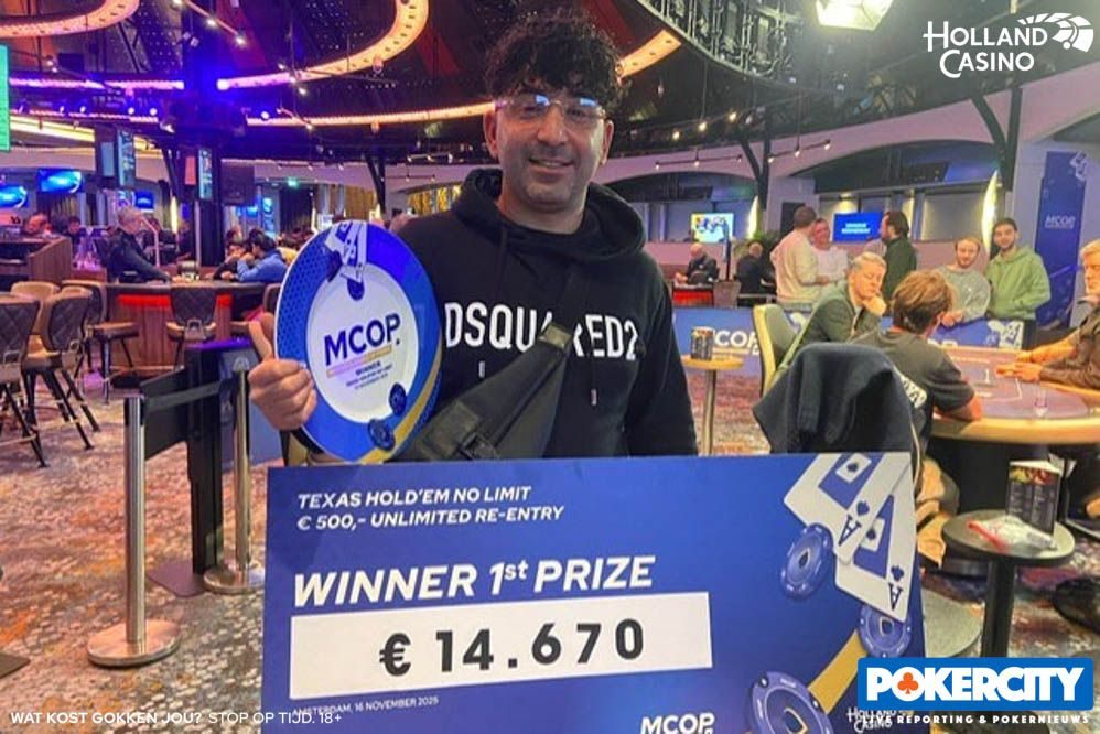 De rest van de top eindigde kort op elkaar, met Koen van den Bemd (4e, €5.364), gevolgd door Eli Fisz (5e, €3.942) en Jose Garcia (6e, €2.837). Verder zagen we Sebastiaan van den Berg (7e, €2.042), Jeroen Reiber (8e, €1.506) en Harry Buisman (9e, €1.162) aan de finaletafel.