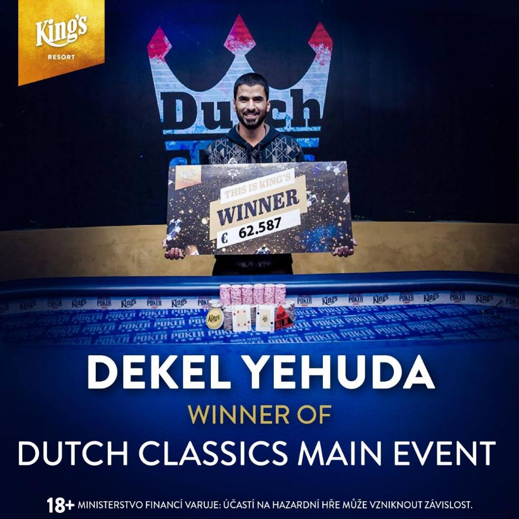 Het is de Nederlanders en Belgen niet gelukt de overwinning in de wacht te slepen van het Dutch Classics Main Event. De winst ging naar Dekel Yehuda uit Israël die €62.587 plus een ticket voor het WSOPE Main Event won. Beste Nederlander was Paul Huiberts op de vierde plaats nadat de shorte Ray Oosterbaan als 15e eindigde. De Belgen konden helaas niet veel uithalen en hadden met Jasper Desmet op de zevende plaats de beste score.