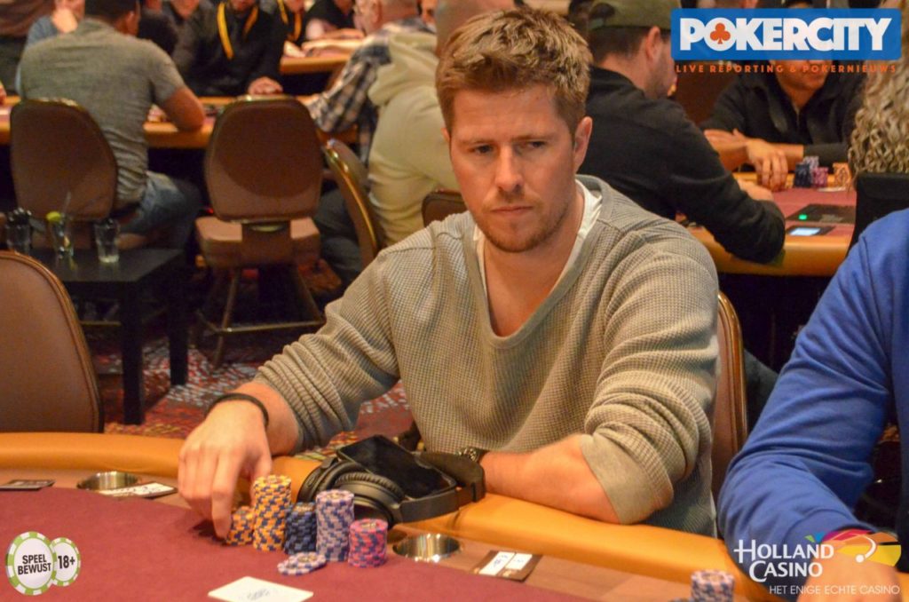 Mark Wiegerinck heeft er een flinke rollercoaster opzitten. Hij zakte terug toch 10.000, dubbelde daarna tot drie keer toe tot een hele gezonde stack waarna hij vrijwel alles weer verloor toen hi met Q