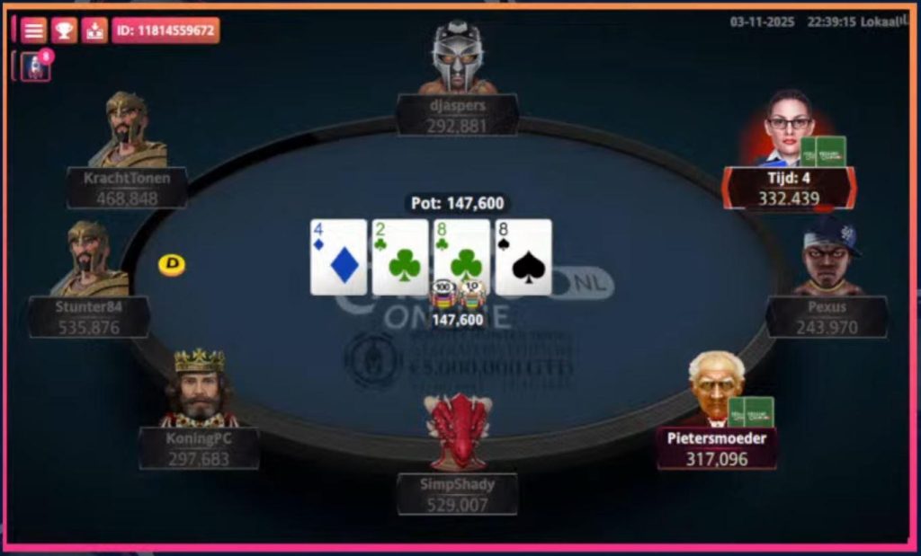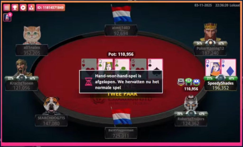 ‘shiptrue1617′(3e, €372) eiste het brons op. Hij schoof all-in op Q