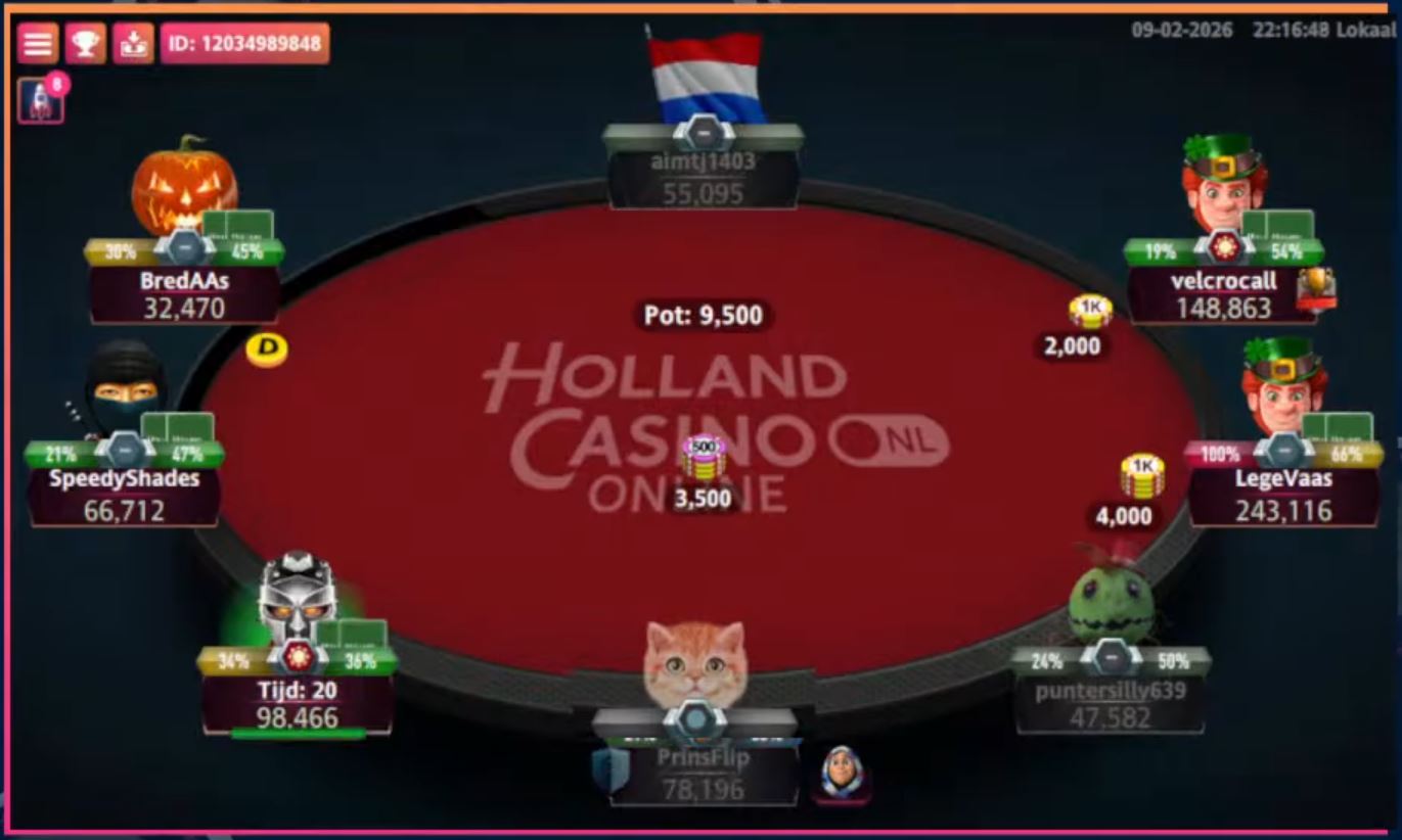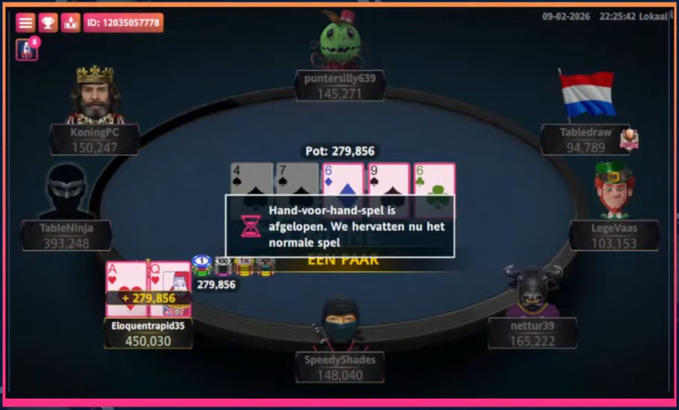 Ondergetekende Martijn ‘KoningPC’ Kingma (5e) viel af bij de laatste vijf. Ook hier was ‘puntersilly639’ de boosdoener met boer-tien versus pocket zevens. De tien viel op de flop.