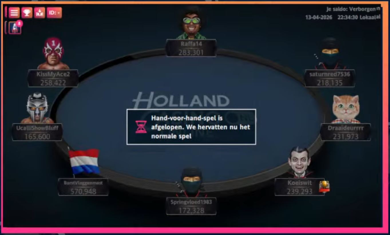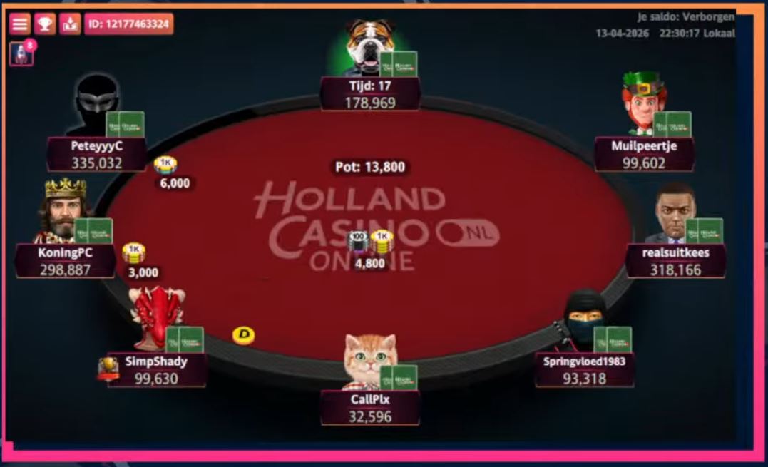 Maandag 13 april was het met HCOPL S9#09 van de Holland Casino Online Poker League tijd voor de achtste speelronde van seizoen 9. In het €20 Main Event ging de titel deze week opnieuw naar ‘Springvloed1983’ á €565. De €55 High Roller werd een prooi voor Martijn ‘KoningPC’ Kingma, waarmee hij €750 verdiende. De volgende speelronde staat op maandag 20 april gepland. Wat kost gokken jou? Stop op tijd 18+.
