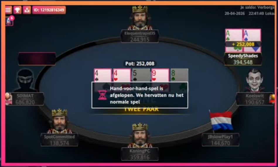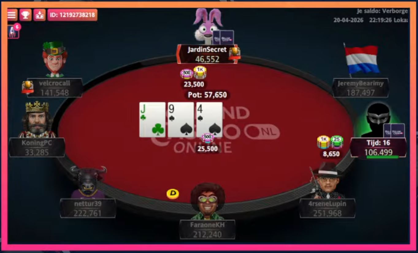 Maandag 20 april was het met HCOPL S9#10 van de Holland Casino Online Poker League tijd voor de tiende speelronde van seizoen 9. In het €20 Main Event ging de titel deze week naar Kas ‘Koeiswit’ Veken á €565. De €55 High Roller werd een prooi voor ‘FaraoneKH’, waarmee hij €762 verdiende. De volgende speelronde staat op maandag 27 april gepland. Wat kost gokken jou? Stop op tijd 18+.