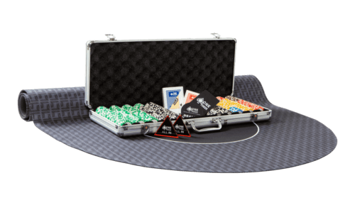 Je kunt je poker chips uiteraard ook bestellen als complete pokerset. Je kunt kiezen voor enkel de chips in een handige pokerkoffer, maar je kunt deze ook uitbreiden met kaarten, dealer button, all in button, cut cards en zelfs een rubberen pokermat.