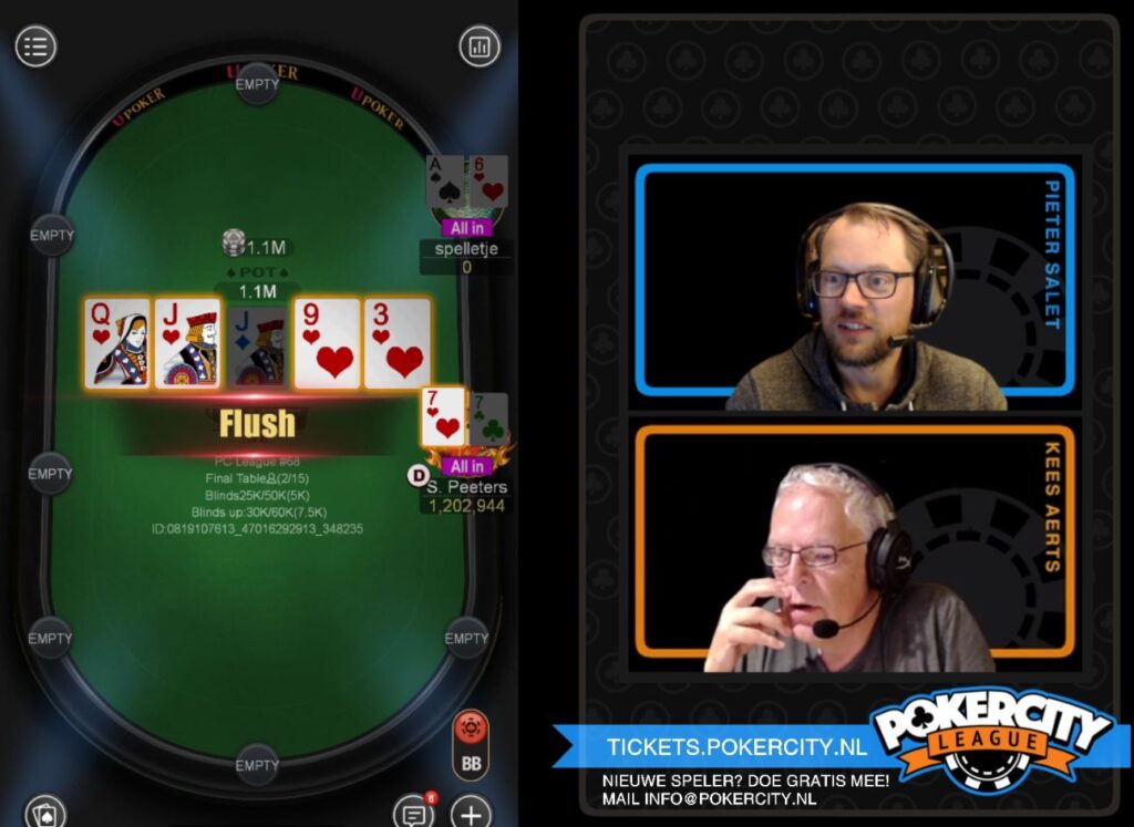Sem Peeters heeft zijn titel in de PokerCity League te pakken! Sem versloeg in PCL #68 heads-up Daan ‘spelletje’ van Leeuwen die ook voor zijn eerste titel ging. Tweevoudig kampioen Ben Aerts werd derde en deed uitstekende zaken voor de maandranking (hij gaat nu aan kop) en het algemeen klassement (fors ingelopen op nummer drie Barrie Pietersz). Er zijn nog vier rankingtoernooien te gaan in seizoen 1 van de PokerCity League. Deze zijn op zondag 22 augustus (PCL #69), dinsdag 24 augustus (PCL #70), donderdag 26 augustus (PCL #71) en zondag 29 augustus (PCL #72). Op zaterdag 21 en 28 augustus zijn er nog freerolls. Seizoen 2 van de PCL gaat in september van start, daarover volgt volgende week alle informatie!
