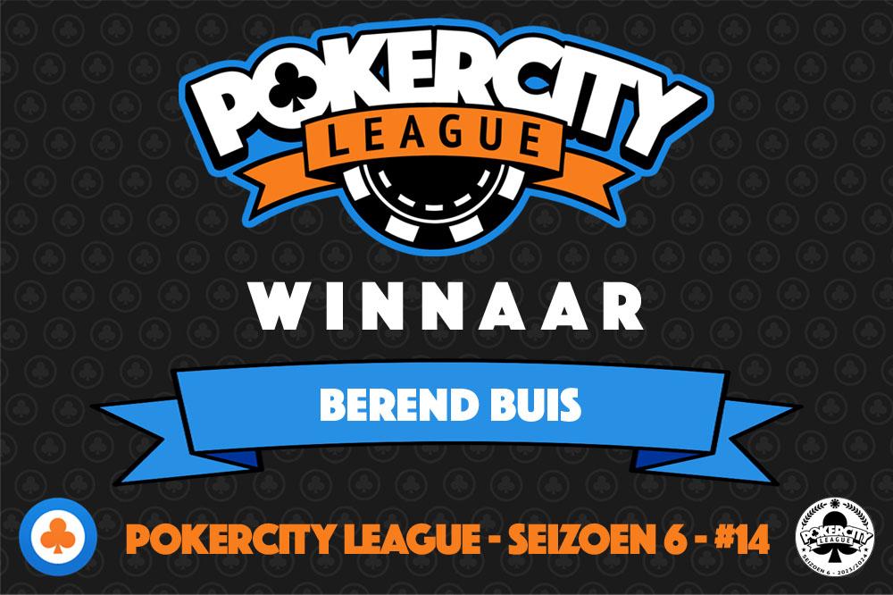 Berend Buis werd zo de winnaar van PCL6 #14 en heeft nu één bullet voor de finale van de PokerCity League. Je verdient entry’s voor de finale door een toernooi te winnen, zes play-offtickets te pakken of een maandranking te winnen.