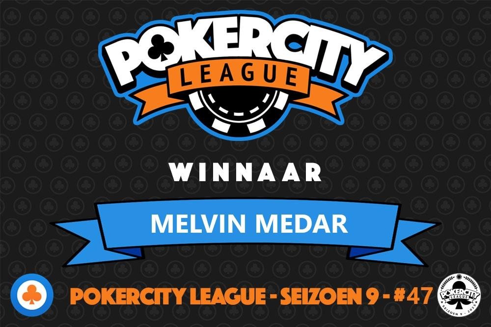 Melvin Medar werd zo de winnaar van PCL9 #47 en heeft nu twee bullets voor de finale van de PokerCity League. Je verdient bullets voor de finale door een toernooi te winnen, zes play-offtickets te pakken of een maandranking te winnen.