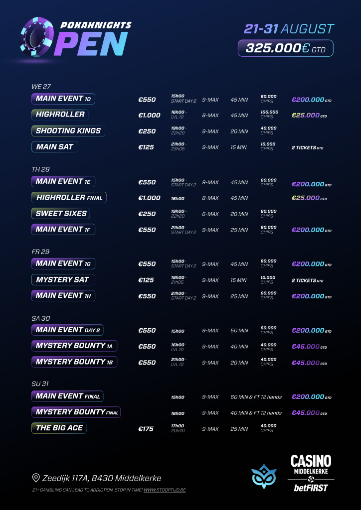 Benieuwd naar het volledige aanbod tijdens de Pokahnights Open? Ontdek het hier.