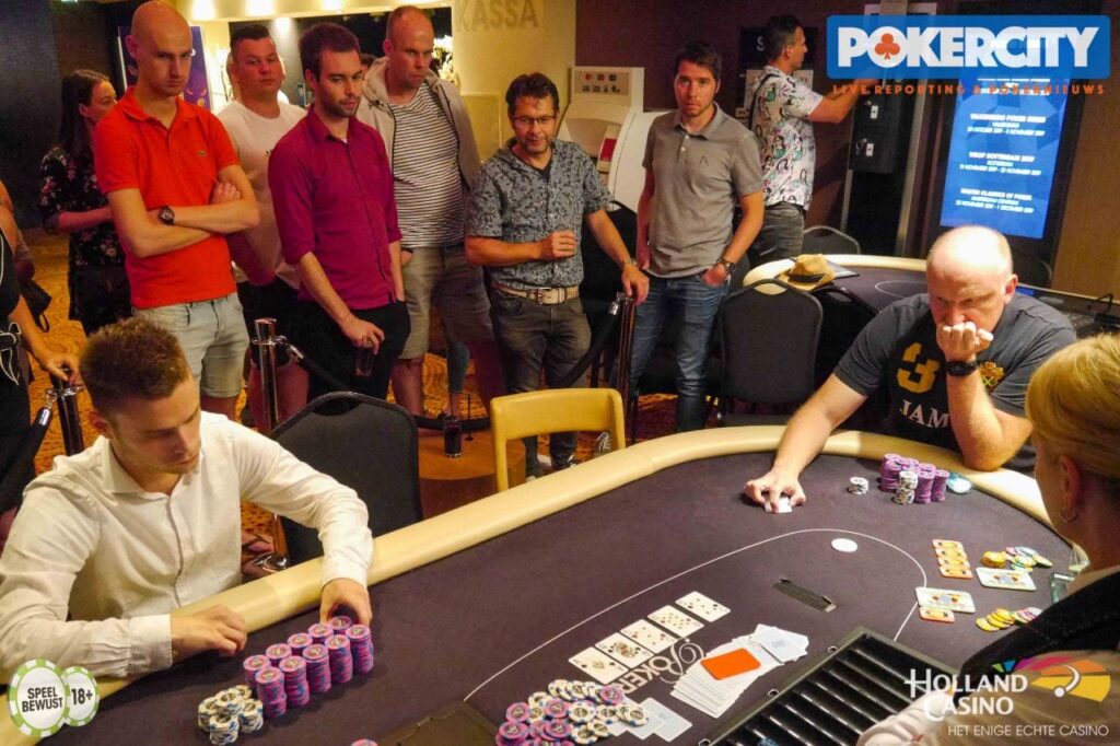 Hierna golfde het spel een beetje op en neer, waarbij Mondelaars de kleine potjes won en Vermeer het van de grote klappen moest hebben. Het was wachten op de grote confrontatie all-in en die kwam na een kleine anderhalf uur heads-up poker. Op een K