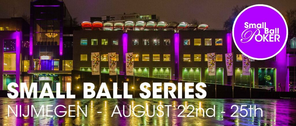 Augustus wordt de maand van de kleinere toernooiseries bij het Holland Casino, met Small Ball Series in Venlo (15 t/m 18 augustus) en Nijmegen (22 t/m 25 augustus). In Venlo staan er vier toernooien op het programma met als ‘main event’ een tweedaagse €300 NLHE Unlimited Re-entry. In Nijmegen staan er drie events op de planning met als belangrijkste toernooi een €330 NLHE Main Event met twee startdagen en ontknoping op Dag 2. PokerCity is er in Nijmegen bij op zaterdag 24 augustus voor het blogverslag van Dag 2 van het Main Event, van de overige toernooien publiceren we de uitslagen en winnaarsfoto’s.