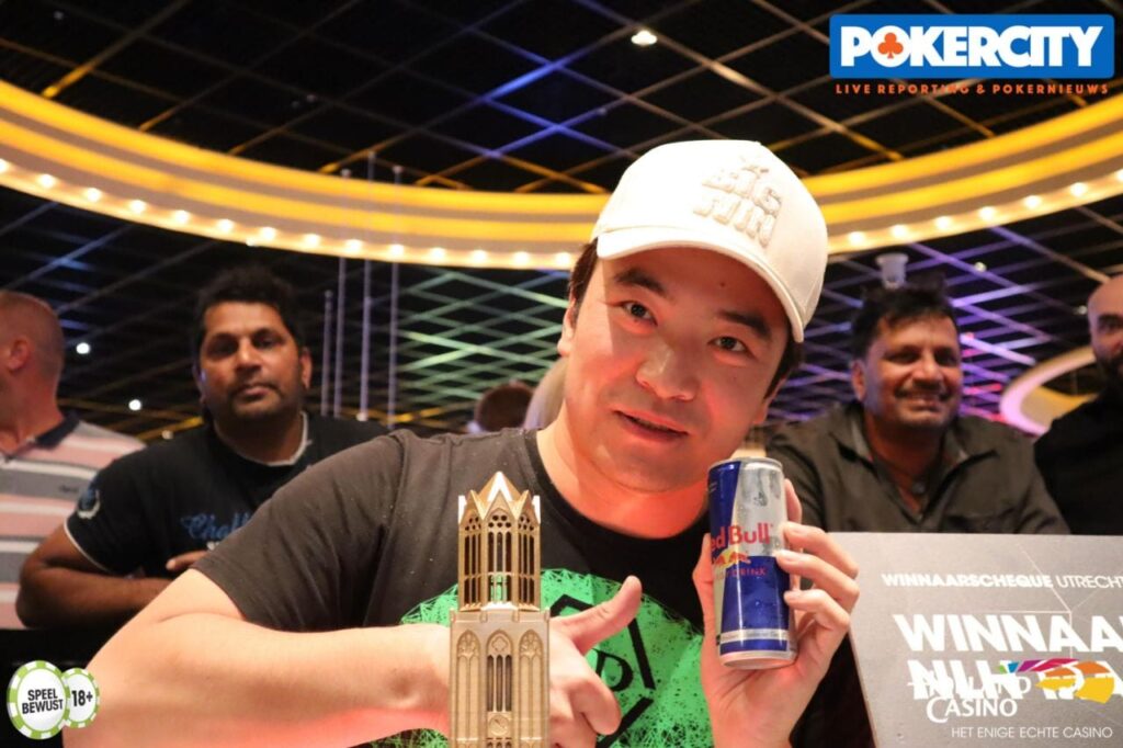 Guo Hongbin (1e, €44.807) werd zo de eerste Australische winnaar van het Main Event van de Utrecht Poker Series. En met zes busts aan een tienkoppige finaletafel is het lastig om dat onverdiend te noemen. Hongbin, die gedurende de finaletafel maar liefst 10 (!!) Red Bulls achterover klokte, is op poker rondreis door Europa en na de WPT Portugal gespeeld te hebben, zag hij de Utrecht Poker Series op de kalender staan en besloot hij dat het wel leuk was om die te spelen.