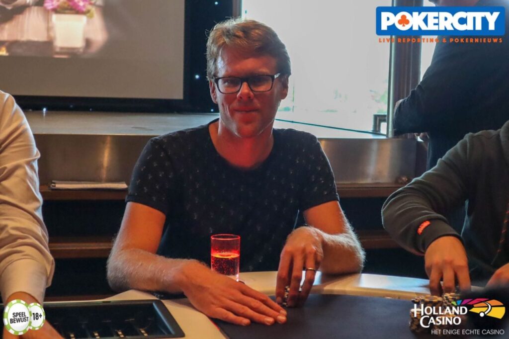 Johan de Roo (7e, €7.448), die de dag met de tweede stack was begonnen, vond daarna zijn Waterloo. De Roo zat in veel potten, maar wist er maar weinig te winnen. Dat is natuurlijk niet goed voor je stack en dat leidde uiteindelijk ook tot de uitschakeling van De Roo. De Roo schoof zijn laatste zeven BB naar het midden met K