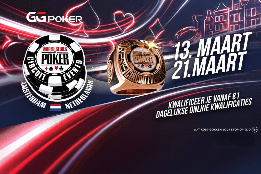 In maart strijkt het World Series of Poker Circuit opnieuw neer in Holland Casino Amsterdam Centrum. Van 13 tot en met 21 maart staat Amsterdam volledig in het teken van ringen, grote prijzen en internationale allure. Wie erbij wil zijn, kan zich bovendien al vanaf €1 online kwalificeren via GGPoker.