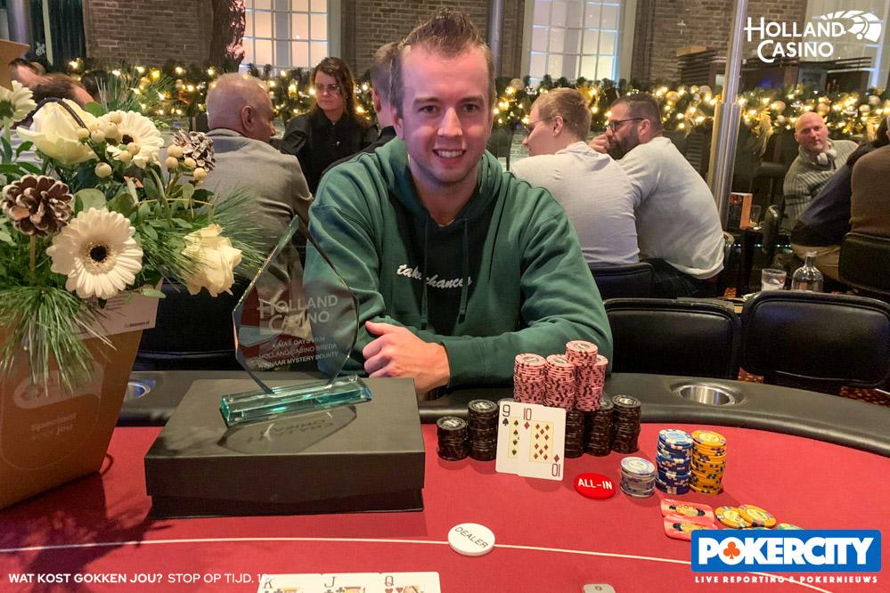 De X-Mas Days in Holland Casino Breda trapten afgelopen vrijdagavond 20 december af met een €300 Mystery Bounty toernooi. Met veertig seats beschikbaar werden in totaal 53 entry’s genoteerd. Dat leverde zeven betaalde plekken op. Kevin van Veen (1e, €4.650 inclusief bounty’s) pakte de eerste titel van de X-Mas Days Breda 2024. Sadikcan Demir (2e, €2.667) moest genoegen met zilver en Frank Wouters (3e, €2.062) pakte brons.